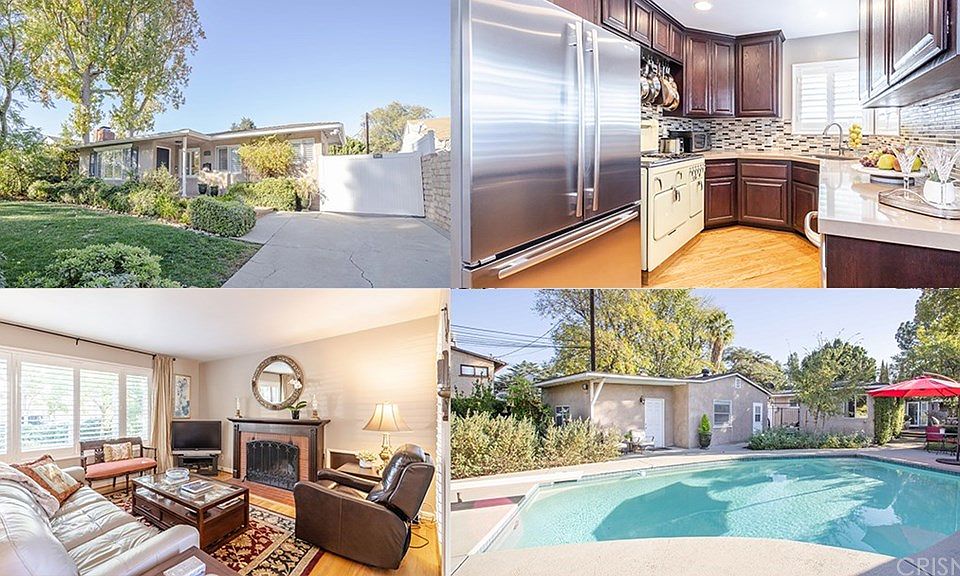 Super charming and beautifully maintained 3 bedroom, 2 bath pool home in a tree-lined street. A true gem located within Granada Hills Charter High School boundaries. This forever home is now for sale. Sellers have upgraded throughout. From grand curb-appeal of green grass and hedges, smooth stucco, newer roof, dual pane windows, long driveway to the awesome detached garage and its additional recreation room complete with 3/4 bath and kitchenette (ADU ready!). Interior features not limited to plantation shutters, real hardwood flooring, newer remodeled kitchen and baths, and an airy indoor/outdoor vibe leading to the pool. Backyard is an ideal entertainers dream spot with Belgard pavers and a sitting area overlooking the beautiful pool.