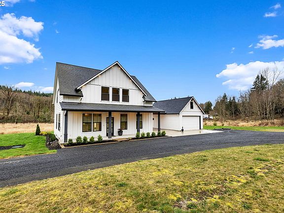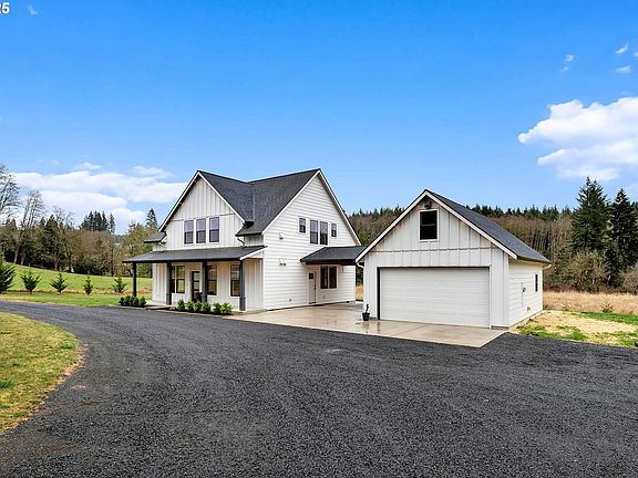 Welcome home! Nestled on 6.51 acres, this gorgeous home features an efficient layout, and 9 foot ceilings. The fantastic kitchen boasts solid surface counter tops, eat island, double wall oven, cooktop, and SS appliances. Upstairs you'll find spacious bedrooms, modern fixtures. Step outside and relax on the covered patio! The forced air heating ensures year-round comfort. A detached garage offers heated concrete floors and ample storage. Surrounded by nature yet conveniently located, this property blends rural tranquility with modern living—perfect for those seeking space, privacy, and comfort. Come see this one before it's gone!