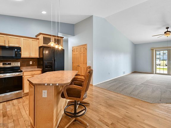 Welcome to this charming 2-bedroom, 2 bath condominium, designed for comfort and convenience. Featuring a spacious 2-stall garage and private patio, this home offers the perfect blend of functionality and relaxation. Inside you will love the bright kitchen, center island, quality cabinets and newer appliances. The open floor plan is filled with natural light. The condo features a large laundry room, primary bed and bath with ample closet space. Enjoy easy access to common area space that is perfect for entertaining or gathering with neighbors. The building features a new roof and steel siding. The HOA takes care of snow removal and lawn maintenance, making this the perfect place to call home!