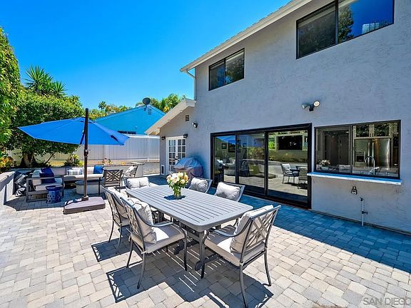 Price improvement! Beautiful Cape Cod style 4 BR, 2.5 bath home. Corner lot on a cul-de-sac with more than a peek-a-boo ocean view from living room and bedroom, NO HOA or Mello-Roos in Olde Carlsbad! Completely renovated (virtually new) inside and out. Gourmet kitchen, 16ft vaulted ceilings in large living room and primary suite and 3 guest bedrooms, large family room, formal dining room, plus added (permitted) entertainment/den (161sqft) and laundry (51sqft). Open concept kitchen and living areas with access to backyard. Gorgeous finishes with 100% re-plastered smooth walls/ceilings. Totally insulated. 2 fireplaces with stacked split-faced Carrara marble, black granite hearth and gas logs, hardwood floors, new craftsman solid pine interior doors, with Baldwin door handles, new custom white lacquered solid maple shaker cabinetry, glass door upper cabinets and under cabinet lighting, and marble countertops, movable island, high-end SS kitchen appliances, Wine Cooler/Bar, built-in Bosch oven (Std or Convection), Bosch 5-burner gas cooktop & SS hood, 2 built-in 50in TVs, Wi-Fi, new dimmable LED lighting throughout, new Kohler sinks, drains, faucets, and toilets in all baths. 2 large built-in shaker linen cabinets (hallway and primary bedroom). Primary suite has a 12ft wide closet with custom built-ins, four 3x8 ft backlit glass-paneled doors, remote reversible ceiling fan, ensuite bath with custom shaker cabinets and marble countertops, double sinks and separate makeup vanity, marble floor and shower. Finished garage w/ fire-rated door, re-plastered smooth walls/ceiling,