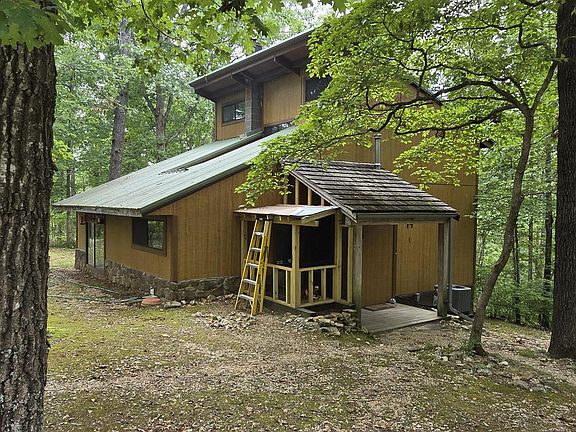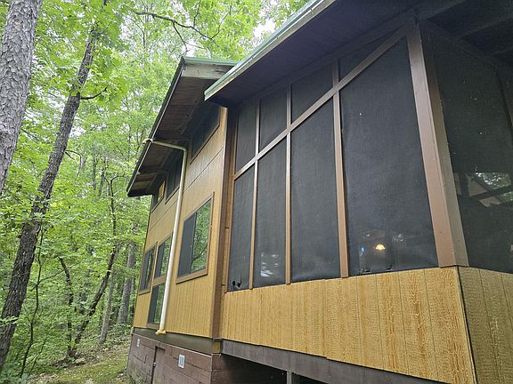 Peace and quiet is what this place is about. Cozy 3 bed 1 bath 1.5 story cabin sits in the middle of this mostly wooded 40 acres. Property features several outbuildings such as a 12 x 20 shed/workshop with an all concrete storm shelter under it. Also, 25 x 33 workshop/garage with electric, 8 x 12 garden shed and 8 x 12 greenhouse. Home has nice hardwood floors mainly throughout on the main floor with cedar cabinets and a large 12 x 16 screened in porch. Maintenance free Diamond Kote siding with a metal roof. Property features springs, year around creek and seasonal creek. Loads of timber with some marketable and a 3 to 4 acre field perfect for a food plot. Tons of wildlife have been seen on this property as well. Don't miss this one!