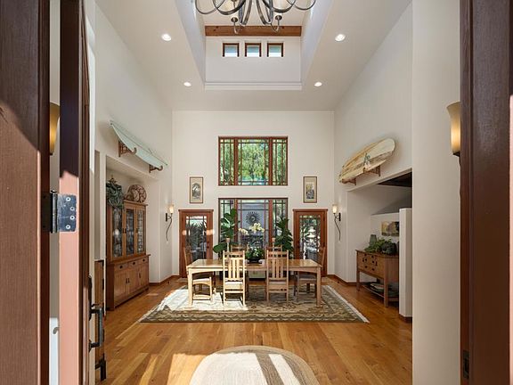 Discover unparalleled privacy and seclusion in this Frank Lloyd Wright-inspired estate, perched high above the landscape on four lushly landscaped acres. Every detail of this single level home reflects exceptional craftsmanship, from the custom millwork to the airy design that welcomes abundant natural light into every room. This four-bedroom retreat is designed for seamless indoor-outdoor living. White oak floors flow throughout the home, creating a warm and inviting ambiance. Step outside to an expansive entertaining area, complete with a sparkling pool, outdoor fireplace, alfresco dining space, and a charming greenhouse. The property is perfectly positioned to capture the refreshing ocean breeze. Enjoy energy-efficient living with fully owned solar panels, new dual-zone heating and AC systems, and a Tesla charger. The property also features a new septic system, a fully fenced area for dogs, and the opportunity to expand with an ADU. Surrounded by prestigious estates, this private haven is a short drive from world-class wineries and pristine beaches, offering the best of both coastal and countryside living. Whether hosting gatherings or enjoying tranquil solitude, this home is a masterpiece of luxury and sustainability.