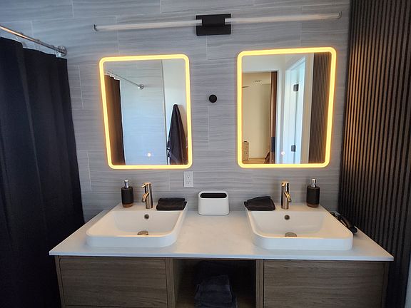 Mature treesModern dimmable lightingModern walk-in showerHigh-end equipment and materialsPremium finishesPrivate backyardRefreshed landscaping