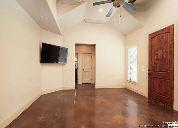 If you are looking for a stylish, well-built place to live near all of the fun in Historic Gruene, look no further! This charming 3 Bedroom, 2.5 bath townhome comes fully equipped with all appliances, two mounted TV's, and the yard is maintained for you, making it turn key and ready for you now! The kitchen has an abundance of custom cabinetry for its size, upgraded gas range, stainless steel appliances and gorgeous granite countertops. The primary suite on the main level boasts a large upgraded tile shower, walk in closet and offers privacy. Another 2 bedrooms, a full bath and a loft office area are on the next level up. You will notice the custom cabinetry is continued throughout the home, easy to maintain stained concrete floors, and a gorgeous solid wood rustic front door to welcome your guests. The secure gated community also offers a sparkling large pool with rock waterfall for you to enjoy! Enjoy an evening at home on your back patio with a huge rock fireplace. Live music is only steps away to The Villa and Gruene Hall! Fine dining at The Gruene Door, Gruene River Grill, Gristmill, Mozies, The Birdhouse, among many other popular go-to spots. Live music venues are endless and then there is the numerous shopping venues. Gruene Putt Putt is also open daily! Live the lifestyle without the commitment. Call today for a private viewing before this home is gone!