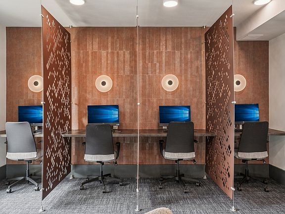 - Exterior features: , Amenify On-Demand Home Services, Amenity Building, Bike Repair Stations, Bocce Ball, Built-in Shelves*, Business Center, Central Mail Location, Community-Wide Amenity Wifi, Conference Room, Corner Unit, Corridor Attached Garages, Courtyard, Custom Flat Panel Cabinetry, Demonstration Kitchen, Efficient Appliances, Electric Car Charging Stations, Framed Vanity Mirrors, Free Weights, Game Room, Golf Simulator Bay, Gourmet Kitchens w/ Undermount Sink, Granite Countertops, Hammocks, High Ceilings, Home Intrusion Alarms w/ Optional Monitoring, Hotel Style Guest Suites for Resident Use, Indoor Trash Chutes in Each Building, Kitchen Islands*, On-Site Maintenance, On-Site Management, One-tone paint scheme w/Accent Doors, Online Maintenance Requests, Online Rent Payment, Outdoor Grills, Pendant Lighting, Pet Washing Station, Poolside Wi-Fi, Private Offices, Putting Green, Rain Shower Heads*, Smart Thermostats, Snowboard Storage, Soaking Tubs, Soft Close Drawers + Cabinets, Stainless Steel Appliances, Sundeck, TV Lounge, Theater, Tile Backsplash, USB Enabled Wall Outlets, Under-Cabinet Lighting, Walk-in Showers*, Walking Path, Wine Rack, Wood Style Flooring, Yoga Room