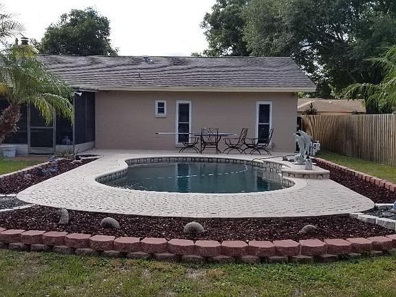 New Windows throughout the home double pane easy slide open and pull in for washing. Extra tint for extra help to keep cool. New A/C added in 2012. New roof 2014. 2019 - Newly remodeled, fresh paint inside and out. New fully remodeled master bathroom, new flooring throughout whole house, all rooms have new doors, new electrical outlets and switches throughout. Newly remodeled kitchen cabinets. Nice stone fireplace. Exterior of house is equipped for lots of X-mas light all on separate box. Nice pool with extra big yard, one of the biggest lots in the neighborhood.
