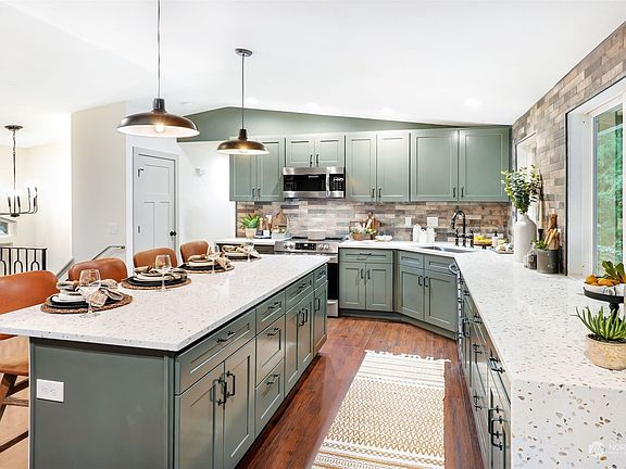 Situated in Bothell's highly sought-after Mays Pond, this beautiful home captivates you with its timeless curb appeal! Extensive updates begin outside; professional landscaping, new exterior paint & roof. Inside has stunning LVP floors in the main living spaces & all four bedrooms. The vaulted ceilings & open-concept floor plan create an inviting atmosphere. The custom-designed kitchen wows with its oversized centerpiece island & designer finishes! You'll love your primary bedroom, w/ luxury closet systems & ensuite. Downstairs, a spacious bonus area with warm wood accents is ready for entertaining! The home also has a fully-fenced backyard & upper entertaining deck. All just moments away from the Mill Creek Town Center, parks, I-5 & I-405!