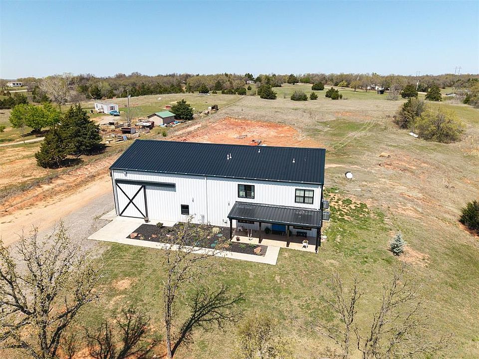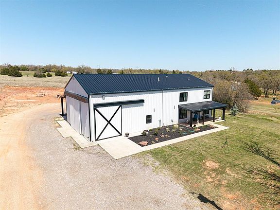 Welcome to your dream home where modern luxury meets serene country living! Situated on 5 sprawling acres, this custom-designed 4-bedroom, 3.5-bathroom barndominium offers the perfect blend of style, space, and functionality. Step inside to discover luxurious modern finishes throughout, including custom epoxy floors, sleek quartz countertops, and a spacious kitchen with a large island and walk-in pantry, perfect for entertaining or daily living! Each of the four bedrooms features oversized closets with custom built-ins, ensuring ample storage and comfort. The layout provides ample privacy for the master bedroom as it is the only bedroom downstairs! Enjoy the convenience of a tankless hot water heater, private water well, and a thoughtfully designed floor plan that caters to both form and function. Outdoors, the amenities continue with an 80’x18’ covered rear patio ideal for relaxing or entertaining, and an attached 40’x40’ workshop, offering endless possibilities for hobbies, storage, or home business needs. This one-of-a-kind property offers privacy, space, and a refined country lifestyle just minutes from city conveniences. Don’t miss your chance to own this incredible home!