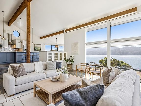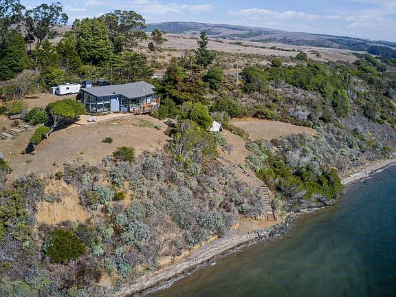 One-of-a-kind waterfront hideaway on the eastern banks of Tomales Bay, this 1.4-acre retreat offers sweeping, unobstructed views of the Olema Valley, Inverness Ridge, and Point Reyes National Seashore. The 2-bedroom, 2-bath home embraces its setting with floor-to-ceiling windows and an open floor plan that fills the living spaces with natural light. A newly remodeled kitchen flows into a spacious living room anchored by a fireplace, while a wrap-around deck invites seamless indoor-outdoor living. Watch marine life glide by from the dining room window or step down to your own private beach for kayaking and water play. Beyond the home, the property is enriched by spring-fed ponds, a greenhouse, tool room, kayak shed, and a charming she-shed. Outdoor spaces include a horseshoe pit and grounds bordered by national parkland, ensuring both privacy and a direct connection to nature. With magical sunsets, unmatched views, this coastal retreat is both an escape and an opportunity.