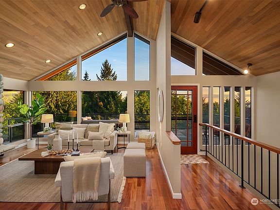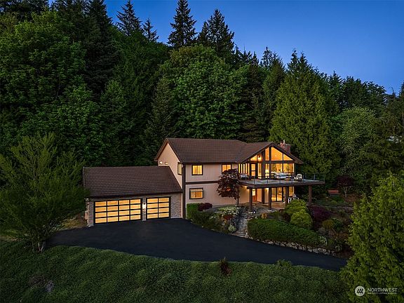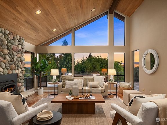 Welcome home to PNW Contemporary living on Cougar Mountain, in the coveted Newcastle community. This beautiful, SW facing home comes with the promise that you’ll never miss another sunset with stunning views for miles wherever you look! Situated on 5 lush acres & offering 4 bedrooms, an expansive bonus room, office, gym room, sizeable sauna, 3 car garage, plus special architectural touches throughout, including walls of windows & natural light, soaring cedar ceilings, and a river rock fireplace. The updated kitchen, 2 large dining spaces, a multitude of decks, (both covered & uncovered) truly make entertaining a dream. Located in the esteemed Issaquah SD and close to walking trails + the urban amenities of Bellevue, Issaquah & The Landing.