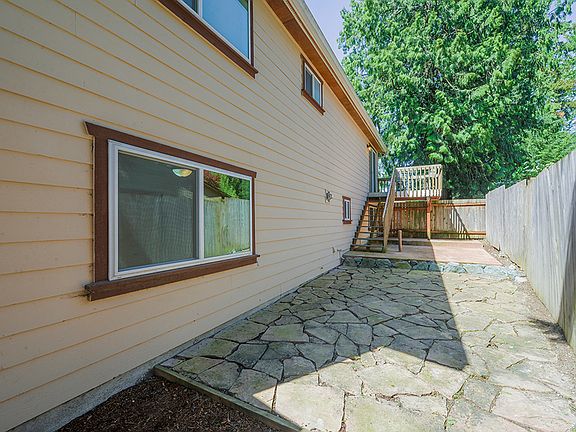 Beautiful open concept upper floor living room with vaulted ceilings, wood burning stove, large open kitchen with island & dining room which opens to a deck. The large master bedroom boasts an extra large walk in closet with custom storage & full updated bath, The downstairs features a large family room with fireplace, 2 bedrooms, new carpet, full updated bathroom, laundry & access to the large attached garage. You will love this large corner lot with a fenced backyard. Close to parks and community pool.