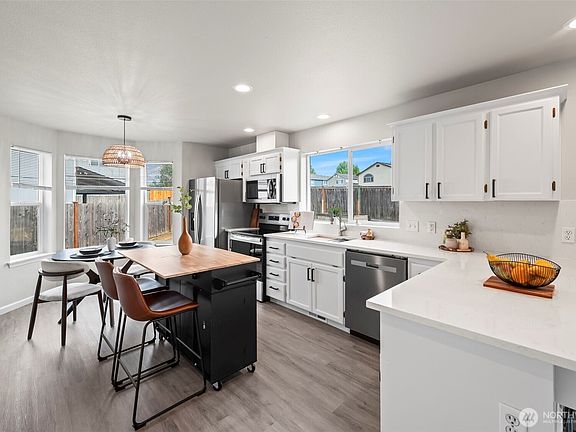 $60k+in upgrades! New roof, flooring, interior/exterior paint, beautiful quartz countertops throughout, new door & cabinet hardware, appliances, contemporary light fixtures, white baseboard & 6-panel doors! Furnace & water heater, just a few years old, located in a prime location close to everything! Easy commute to JBLM, freeways, all dining & shopping & any amenity you could ever want, as well as coveted Puyallup School district!! This home boasts plenty of light, an open concept kitchen and family room with a cozy gas fireplace, formal dining & living room, huge primary with a walk-in closet & a luxurious 5 piece bath including a soaking tub & double sinks...all at the end of a cul de sac with a large fenced yard! Don't miss this home!