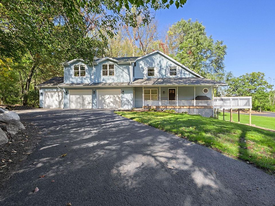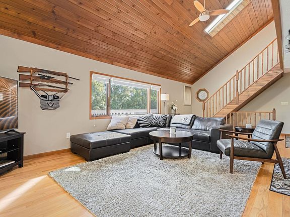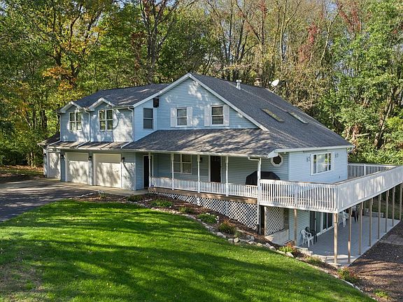 Spacious Wooded Retreat! Nestled in a wooded setting with maintained grounds, this spacious home is just minutes from the Notre Dame campus in Clay Township. Featuring four bedrooms, a den, and four and a half baths, this residence boasts a walk-out, finished lower level and an expansive wrap-around deck, along with inviting patios and a covered porch. Enjoy the convenience of an attached three-car garage equipped with openers. Inside, you'll find vaulted ceilings, solid wood doors, a loft, skylights, and beautiful hardwood floors. There are multiple inviting sitting areas and a cozy fireplace for those chilly evenings. The eat-in kitchen is perfect for gatherings, featuring a walk-in pantry, a central island, and all essential appliances. Additional highlights include a high-efficiency furnace and water heater. TV and furniture are negotiable.