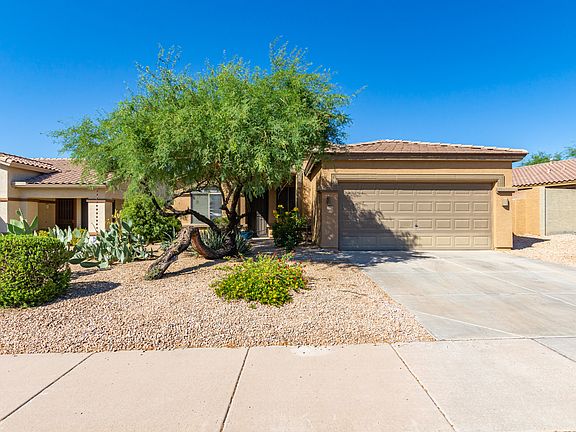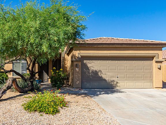 With solar, this house is a bargain as your APS bills will be very low. What a wonderful location within the Estrella Mountain Ranch master-planned community! Incredible amenites are available with just a one time $100 fee! (lakes, trails, cafes, pools, gyms, etc) Less than a mile to the Lakes, Pool/Rec Center and Golf Course. This 2 bed 2 bath home with a den, is an amazing retreat with Solar for those hot summer days!! What an ideal home! Nice open kitchen, overlooks the family room which is great for entertaining. Tile throughout the home is a plus. Enjoy your backyard sanctuary, with great space, long patio and mature landscaping. For added enjoyment, bask under the shady pergola that brings the backyard together.