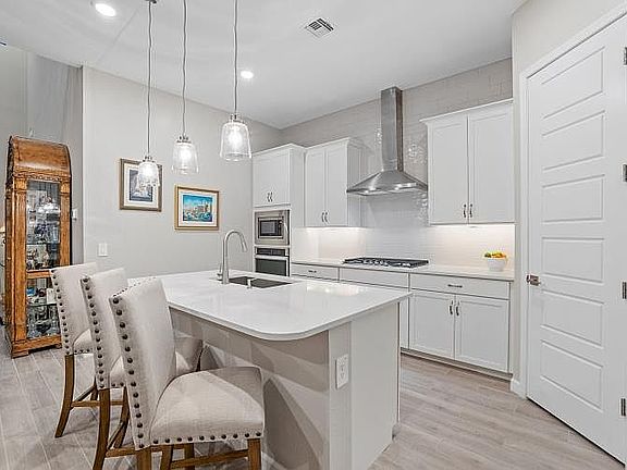 Huge pool and spaWalk-in pantryWhite quartz countersGorgeous white cabinetryWood-like tile flooringLighting and fans