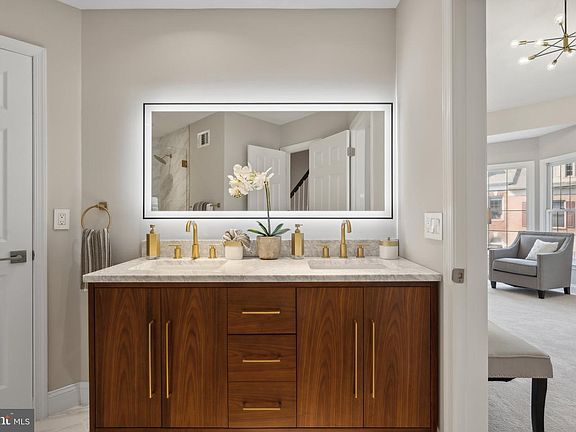 Welcome to 1753 22nd Street North, a beautifully renovated three-bedroom, two-and-a-half-bath townhouse in Arlington's highly sought-after Palisades Park community. Blending modern luxury with timeless style, this home has been thoughtfully reimagined from top to bottom. The main level features gleaming hardwood floors and an open layout ideal for both entertaining and everyday living. At the heart of the home is a gourmet kitchen showcasing quartz countertops, white glass appliances, bar seating, and abundant cabinetry. The adjoining area serves perfectly as a cozy eat-in space or relaxed sitting area, creating an inviting atmosphere for gatherings. Upstairs, the luxurious primary suite offers a spacious walk-in closet and a spa-inspired en-suite bathroom complete with a double vanity, tub, lighted mirror, and frameless glass shower. Two additional bedrooms provide generous space, ample storage, and large windows that fill the rooms with natural light. The additional full bathroom and powder room are appointed with stylish modern finishes. Off the kitchen, a large deck extends the living space outdoors, ideal for grilling, dining, or relaxing in the open air. The home also includes a spacious two-car garage with extra storage and a utility sink for added convenience. Perfectly situated in Palisades Park, this home offers easy access to Arlington's vibrant shopping, dining, and entertainment options, as well as nearby parks and major commuter routes. Elegant, functional, and move-in ready, 1753 22nd Street North delivers the best of refined living in one of Arlington's most desirable neighborhoods.