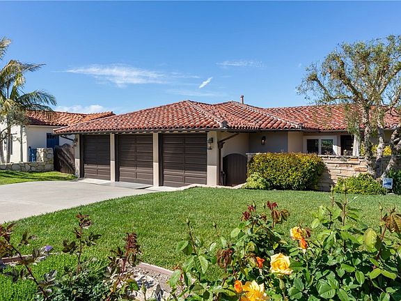 Rarely does an opportunity arise to possess a bespoke, an upgraded Spanish Hacienda-style home reminiscent of Tuscany, nestled in the serene enclave of lower Lunada Bay within Palos Verdes Estates. This architectural gem boasts a sprawling single-level layout spanning 3,000 square feet, featuring four bedrooms, three baths, two fireplaces, and a spacious three-car garage, all harmoniously set on an expansive 10,780 square foot ocean view corner lot. Upon crossing the threshold, one is enveloped in the embrace of meticulously crafted solid hardwood floors and captivating hand-hewn open wood beam ceilings, beckoning one into the heart of the home. Every detail reflects quality craftsmanship, from the gourmet kitchen adorned with custom cabinets, Calacatta marble countertops and top-tier built-in appliances to the superior finishes gracing every corner. Stepping outside unveils a private sanctuary in the form of a meticulously landscaped backyard, where a serene courtyard and patio seamlessly blends indoor and outdoor living, while offering breathtaking ocean and treetop vistas. Here, an exquisite saltwater pool and spa await, promising moments of tranquility and relaxation. Conveniently located in close proximity to acclaimed Palos Verdes Estates public schools, scenic hillside and Bluff-top walking trails, and the amenities of Lunada Bay Plaza. This residence epitomizes luxurious coastal living. Seize the opportunity to immerse yourself in the unparalleled beauty of this unique and custom home by scheduling your private showing today.