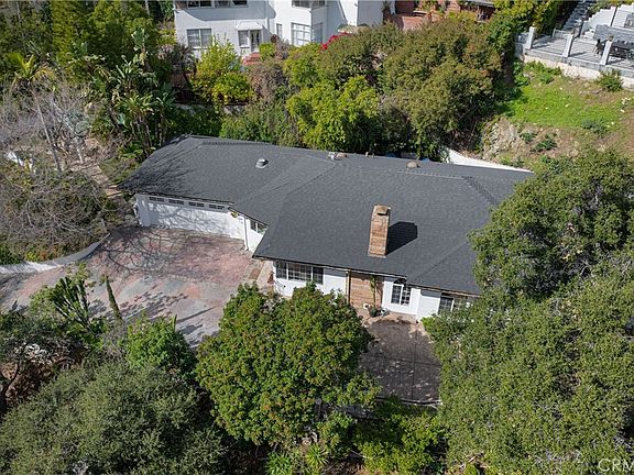Located at the end of the cul-de-sac on Alamo Drive is a unique hillside retreat in the coveted Royal Canyon neighborhood. Built in 1956, this contemporary ranch style home boasts 4 bedrooms & 4 bathrooms in a spacious single-story lifestyle. Surrounded by a tranquil, nature setting, the property offers mature landscaping and mountain views. A large entertaining slate patio with mature landscaping in front of the home and the adjacent tropical flat yard completes the property. Remove yourself from city life at home yet be just up the street from heart of Glendale and nearby cities of La Canada, Pasadena and Eagle Rock. A welcoming and informal open floor plan greats you at the double door entrance. The great room encompassing the family room, dining area and kitchen all enjoy the shared fireplace. Entertain in style around the 52-inch x 82-inch center island in the remodeled kitchen. Modern quartz counters, KitchenAid SS appliances – six burner gas cooktop, 48-inch refrigerator, separate beverage refrigerator, second sink and amazing storage in this terrific space. Check out the killer views out the kitchen window! There’s a convenient pantry room off the kitchen with a sink for food prep & cleaning, storage cabinets and 1/2 bath. A formal living room with a second fireplace extends off the great room. A wall of east facing windows and French doors provide a flood of natural light. The living room extends outside to an entertainment patio the length of the home. Four bedrooms and three bathrooms flow down the interior hallway. There’s an en suite primary with jetted tub and shower, a second en suite bedroom with a 3/4 bath and two bedrooms that share a ¾ bath with double sinks. The usable, flat yard is adjacent to the home and on the same level as the house and patio. What an outdoor oasis! There’s a built-in outdoor kitchen with tiled counter, a charming gazebo for serious lounging and a care-free yard to play with the kids and dog! This area is embraced by lush landscaping and canyon views. Steps leading up from the cul-de-sac will also bring you to this side yard. An attached two car garage enters into the dedicated laundry room. Benefit from the newer roof completed in 2022, all copper plumbing and newer water heater. Minutes from Whole Foods, Trader Joe’s, and the Americana at Brand dining, retail shops & entertainment. Glendale offers award winning schools with 7 dual language programs, STEM and Visual/Performing Arts magnet schools.