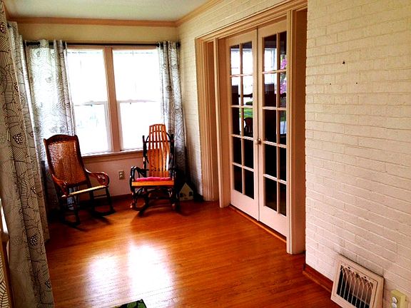 Beautiful spacious bungalow with lots of light! This charming 2 bedroom, 1 bath home features a finished front porch w/ French doors opening into spacious living room and dining room w/ crown moldings. A walk-in closet in one bedroom, full basement, 2.5 car garage w/ loft, and custom-built cabinets and pantry in the kitchen for plenty of storage. Newer Anderson windows and 2-year old roof. Beautifully landscaped.