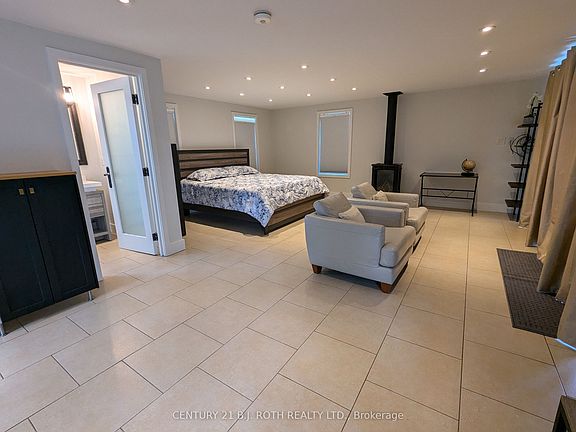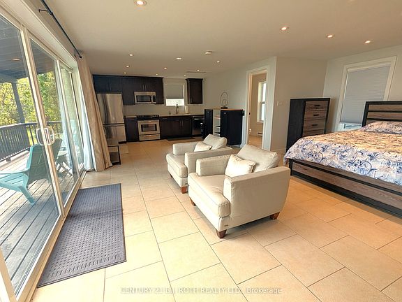 Beachfront Studio Home for Rent: Lakefront Living Starts Here! Wake up to breathtaking sunrises over the water in this modern beachfront studio, available for rent this November! Ideally situated with direct lake access right at your doorstep, this stylish one-room, open-concept unit offers the ultimate in cozy waterfront living. Enjoy a smartly designed layout that combines a sleeping area, eat-in kitchen, and living space in one bright and airy room. Space is perfect for a single person or a couple. The stunning wall-to-wall glass windows and private covered deck provide unobstructed views of the lake, ideal for relaxing mornings or evening sunsets. Inside, you'll find: A gas fireplace for warmth and ambiance, air conditioning for year-round comfort, a built-in laundry tucked conveniently into the kitchen, and a full 3-piece bathroom with a stand-up shower. Outside, a long driveway accommodates two or more vehicles, and a small storage shed provides extra convenience. Available in November, the current tenant is vacating. Utilities (hydro, gas, water, sewer) are extra. Tenant insurance is required. This is the perfect rental for someone seeking peace, views, and direct access to nature right from home. Don't miss your chance to live the lake life!