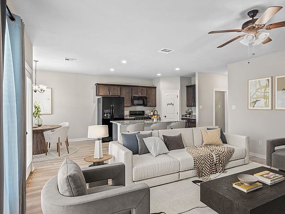 Move-In Ready Home in Porter’s Cove Built by DLSD Homes, the Raeford IV G floor plan offers an open, split layout with 3 bedrooms and 2 full bathrooms. The kitchen is a true highlight, featuring an upgraded gas range, 3cm granite countertops, large island with undermount sink, and beautiful birch cabinetry. This home is designed with comfort and efficiency in mind, including: durable vinyl plank flooring in the living room and wet areas, stylish bronze bathroom fixtures, Tankless gas water heater, Low-E tilt-in windows for energy efficiency, smart Connect Wi-Fi thermostat Enjoy outdoor living on the covered patio and a fully sodded yard, all built on a post-tension slab foundation for lasting strength. Don’t miss your chance to own this beautiful home with modern finishes and thoughtful details throughout!