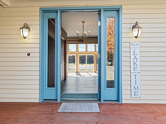 Welcome to your ultimate lakefront escape! Discover unparalleled tranquility and stunning wide-open water views from this spacious one-level home in the sought-after, gated community of Blue Ridge Shores on Lake Louisa. Key Property Features are 150 Feet of Water Frontage with a private Dock and Beach—ready for boating, swimming, and fishing adventures. Bright and Airy Open Floor Plan: The main living space features vaulted ceilings and a cozy fireplace, seamlessly connecting to the dining area and kitchen with a breakfast bar. Prime Outdoor Spaces: Enjoy laid-back lake mornings from the screened-in porch and sunset dinners on the lakeside deck. A dedicated fire pit area offers the perfect spot for wine or hot chocolate year-round. Flexible Living: Featuring 3 bedrooms, 2.5 baths, and a dedicated office, with over 2,300 finished square feet. Convenience & Storage: Includes an oversized attached 2-car garage and a paved driveway, all situated on a private, landscaped lot. Recent Updates & Community Perks Move-In Ready Condition: Peace of mind comes with recent updates, including a new roof and siding (2018), fresh paint and carpets (2025), a new water heater, replaced HVAC (2022), and new sliding doors in the living room.