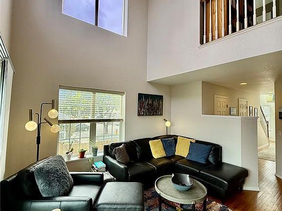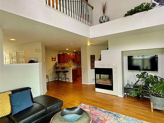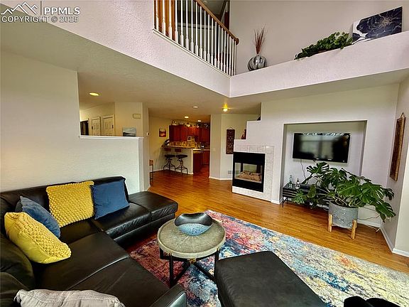 Such a fantastic location! Sweeping mountain views, especially in the winter! This 2 bedroom, 2 1/2 bath end unit has all the upgrades you could want! Main level has all wood flooring! Light & sunny living room with 15+ high ceiling, also in the foyer! , 3 sided fireplace, walk out to a wood deck with scenic mountain views and grassy back yard with mature trees! Separate dining room with fireplace and a high end kitchen with granite tile countertops, breakfast bar, 4 year old high end stainless steel appliances including a gas/oven, french door refrigerator & a pantry. 1/2 bath on the main and easy access to the 2 car attached garage. Upstairs has newer high end carpet with high end padding, a large 23' x 14' vaulted primary bedroom with sitting area, & a large walk in closet. The primary bath adjoins with a double vanity and a walk in shower. There is a 2nd bedroom and loft area that creates a feeling of spaciousness looking down from the loft to the living room below. There is a laundry closet in the loft area for easy access. Also another full bath with jetted tub. Some of the improvements to include: 3 year old high efficiency furnace & A/C. 4 year old interior paint throughout, & 2 year old high end wood blinds throughout. 3 ceiling fans too! Walk or bike to Bear Creek Park with hiking & biking trails, playground, dog park, pickleball courts, & soccer fields. Minutes away from the 5 star Broadmoor Resort, restaurants, schools & shopping. Neutral colors throughout! All the works been done! Move in Ready! WELCOME HOME!