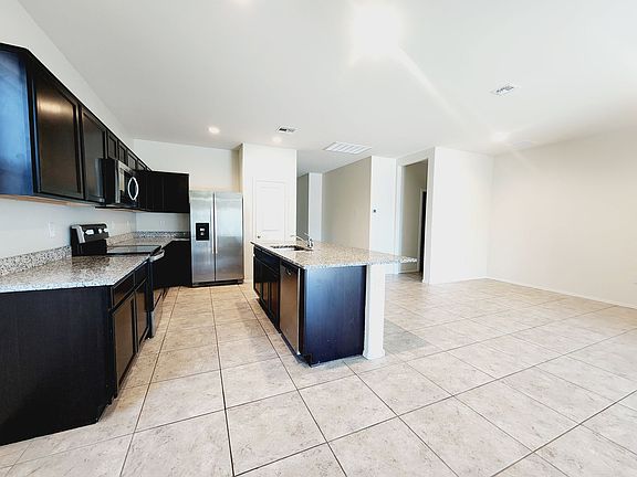 This lovely 3 bedroom home has popular split floor plan , large open kitchen with Espresso cabinetry, granite countertops, stainless appliances and island. Bright and open with two-tone paint, 20x20 tile flooring and plush carpet. This beautiful home has it all including ceiling fans, white 2'' faux blinds, and smart home technology. Covered patio and a 2 car garage. Act fast! this home won't last long!