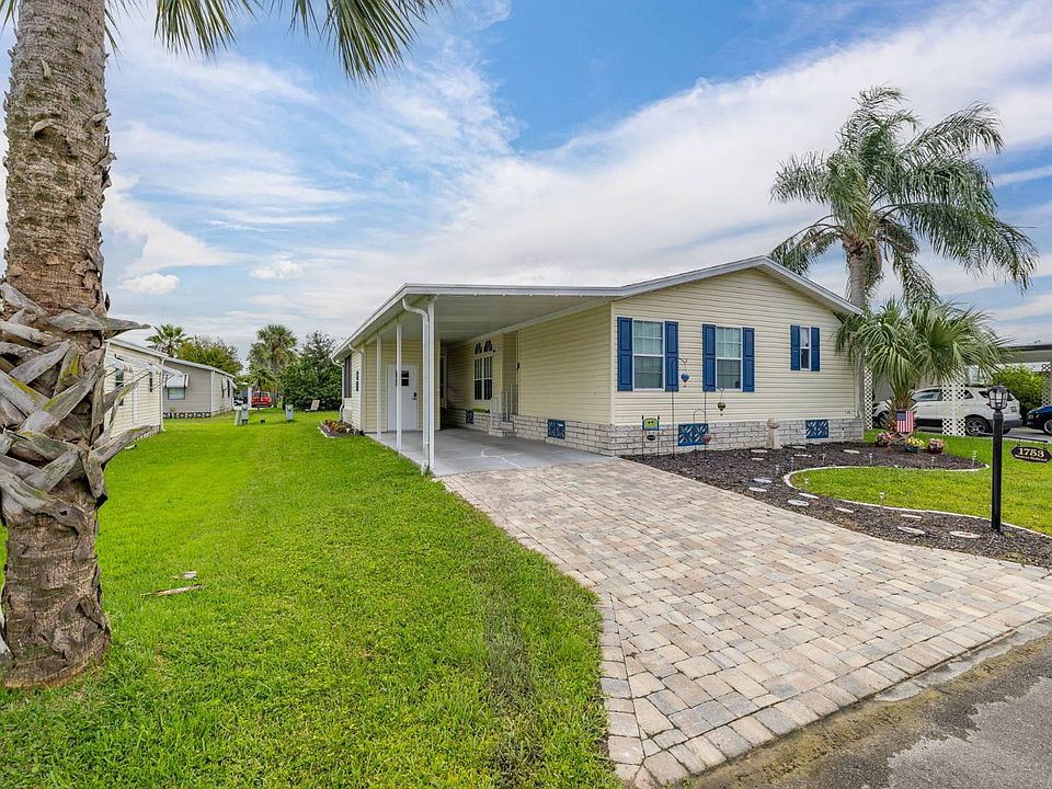 This beautifully remodeled 3-bedroom, 2-bathroom property offers an unparalleled opportunity for a relaxed and active lifestyle in a friendly 55+ community in Kissimmee. Priced at an exceptional $75,000, this home is move-in ready and filled with upgrades. You will enter a home that feels fresh and new, with a coat of fresh paint and durable vinyl plank flooring throughout. The kitchen has granite countertops and sleek stainless-steel appliances, and both bathrooms have been newly remodeled. The home is truly worry-free, as the roof was replaced in June 2023, and the AC unit was installed in April 2021, water heater new in November 2024 and new garbage disposal installed. A unique feature of this home is the spacious lanai. You can enter the lanai through beautiful French doors from the third bedroom, making it a perfect space for relaxing or entertaining. This community is known for its friendly residents and great management. Your lot rent is $1,333.79 a month, which covers water, sewer, trash, and all community amenities. You'll have access to a stunning pool area with pavers, a spa, firepit, pickleball, cornhole, mini-golf, and a BBQ area. The community clubhouse has also been beautifully remodeled with a gorgeous kitchen, a library, a card room, and a fitness room. Please note, the property does not include a refrigerator. Additional expenses include the cable and internet package for $164.12 a month, a shared tax fee of $65.71 and a monthly liability insurance fee of $11.82 are also shared among all residents. This home is only 23 minutes from Disney and conveniently located near shops. It's more than just a home; it's a lifestyle. This beautiful home won't last long at this price. Contact us today to schedule your private showing and take the first step toward living your dream.