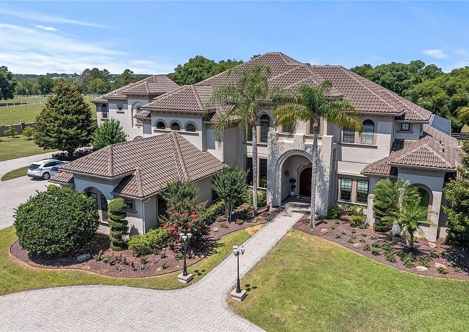 Rare opportunity to own an Equestrian Estate in exclusive Montverde. Montverde, as recently featured by WKMG-TV, is a thriving debt-free community featuring the world renown Montverde Academy just 1.4 miles away. Montverde Academy is a top-notch educational and athletic institution. It provides curriculum from pre-K3 through grade 12. This custom built equestrian home is a testament to unparalleled luxury. As you pass through the gates, you'll be captivated by the sheer elegance and sophistication that awaits. Nestled on 5 acres, this private gated estate showcases flowing fields and equestrian facilities. With more than 8000 sq. ft., this 6 Bedroom / 7.5 Bathroom home was built in 2006 and extensively remodeled in 2014. The property has amazing privacy with a surrounding wall, fencing and mature hedges on the perimeter. The Home has 800 Megabyte wireless internet, 2 Generac whole house Generators, and Roll Down Storm Shutters. OUTSIDE THE HOME: Screened Lanai with a Large Salt Water Pool and Spa with Solar Panels and Heat Pumps for warmth and a 10 person Hot Tub with Waterfall. Pool has deep, shallow, and chair deck ends with Lighting throughout. Additionally, there is a summer kitchen with large DCS grill, Viking vented hood, refrigerator, sink, ice maker, dishwasher, and warming drawer. Wall mounted TV. Cast aluminum table seats 8. Ratan furniture conversation area seats 12. Pool Cage has built-in Lighting. Cabana Bathroom and outdoor shower. Outside the Pool area, there is a Gas Firepit along the walkway to the Stables. The Stable is a 5 stall center aisle barn (33x40) with Air Conditioned Office, bathroom, and Feed Room. Tankless Hot Water system. Utility room with large sink, cabinets and refrigerator/microwave. 12x12 Stalls stabilized with padded floors. Attached to the barn is a 13x33 covered Wash Rack with hot/cold hose bibs. 3 Stalls feature exterior split doors that open to the Paddock (100x30). Running the entire back of the barn is an attached and covered 40x12 equipment shed. 4 irrigated pastures. Fenced and Cross Fenced with 4 Board. Large Paddock with 50 foot round pen. The Grounds have extensive Paver Driveways, Walkways, and Patios. The property features mature Live Oaks and Palm Trees. INSIDE THE HOME: Brazilian Cherry Hardwood floors and Marble throughout. First Floor features 4 Bedrooms, including the Primary (with Sitting Area, 2 large Walk-in Closets, and French Doors to Pool), Primary Bathroom (large jetted tub, 2 person walk-in shower, and 2 Vanity areas), 3 secondary bedrooms are a split plan with 2 ensuite baths, Laundry Room (with built-in desk) and Mud Room off the Garage entry area, Gourmet Kitchen (2 dishwashers, 2 microwaves, coffee center, Wolf gas range, built-in Viking Freezer/Refrigerator, center island with prep sink, huge walk-in pantry), Breakfast Nook overlooking the pool, large Family Room (built-in wall center with 75 inch TV with surround sound system and a 6 ft Fireplace), formal Dining Room (with built-in Hutches) & Living Room, and a private Study/Office (cherry wood walls). The Second Floor has a Bedroom, Billiard/Game Room with Entertainment Bar, Media Room, a Bonus Room with built-in cabinets and desks, and a Breezeway leading to the large Fitness Room. Connected to the Main House is a 820 sqft 1 Bed / 1 Bath Guest Cottage with Kitchen, Dining Nook, and Living Room. French Doors open to the Pergola patio and Firepit area. FURNISHINGS NEGOTIABLE! SELLER FINANCING! THIS HOME MUST BE SEEN!