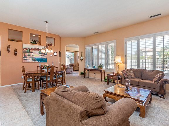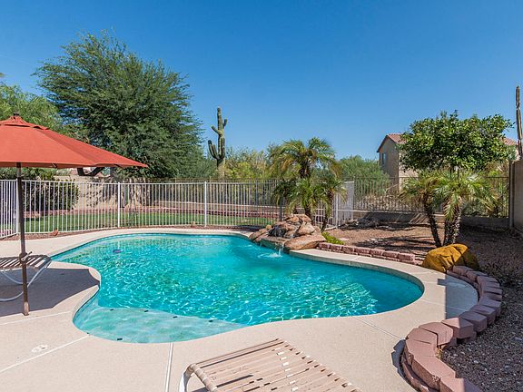 Beautifully maintained 4 beds + 3 baths home on an oversized lot with great mountain views! 2,431 sq ft floor plan that includes formal living/dining room and family room w/ gas fireplace and lots of natural light from the multitude of windows. The eat-in kitchen features an abundance of 36'' oak cabinetry, stainless steel gas range/oven, kitchen peninsula w/ breakfast bar seating, RO system, and cozy casual dining nook. The upstairs master retreat has a gorgeous separate sitting area w/ gas fireplace & niches for decor, sliding door access to the balcony with fabulous mountain views and an attached bath w/ dual sink vanity, jetted tub, shower and walk-in closet . 1 bed & bath downstairs, perfect for guests! The backyard is perfect for outdoor living with covered patio w/ ceiling fan, fenced pool w/ waterfall feature & new pool pump, and grassy area for kids or pets to play! Other features: 3 car garage w/ epoxy floor, sink & service door; new AC unit (2018), ceiling fans, under stair storage, upper cabinetry in the laundry, storage shed, ALL APPLIANCES INCLUDED and so much more! Also be sure to see the fabulous community amenities including parks, pools, gym & golf! See today!