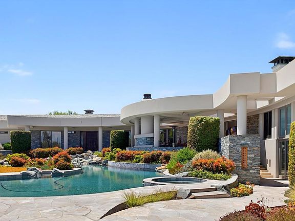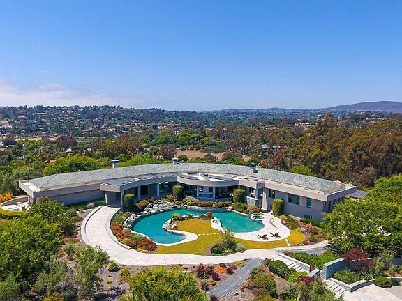 This EXTRAORDINARY Ken Rochetti designed home is one of the most stunningly beautiful, peaceful, and private properties in all of Rancho Santa Fe. This magnificent home was sited on one of the most scenic lots in the Covenant with panoramic and mountain views. It features walls of glass, natural stone, exotic woods and exquisite materials with a unique custom curved design. The entire property embodies the indoor/outdoor lifestyle to be enjoyed in Southern California. In addition to 4 bedroom suites, there are multiple outdoor entertaining areas, a beautifully designed pool and spa set among over 4 acres with notable art sculptures thoughtfully placed throughout the landscape. No detail has been overlooked. Available November 1, 2025.