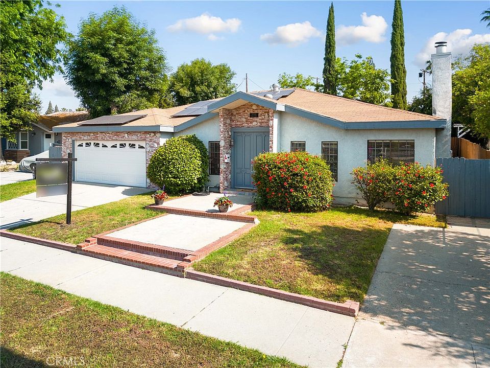 Here is the opportunity you’ve been waiting for in a highly sought-after neighborhood of Old Granada Hills.  This well-kept, light and bright 2098 sq. ft, 3 bedroom, 3 bath home features fresh interior paint, newer laminate floors, new water heater and central air and heat!  The leased solar system allows you to keep cool throughout the Summer without the usual DWP expense! The grand double door entrance opens to the large living and dining room. Newer counters, custom cabinets, recessed lighting and large walk-in pantry highlight the eat-in kitchen! Like to entertain? This great home has a large family room and a cool patio the opens off the kitchen…BBQ ready!  The primary suite boasts a large walk-in closet and double sinks! The peaceful drought tolerant backyard wraps around the house and has endless possibilities. Tons of storage in the 2 car attached garage, with direct access to the house.