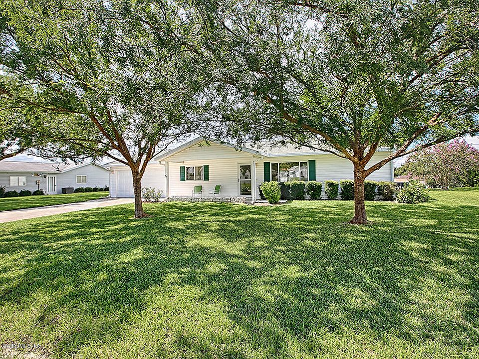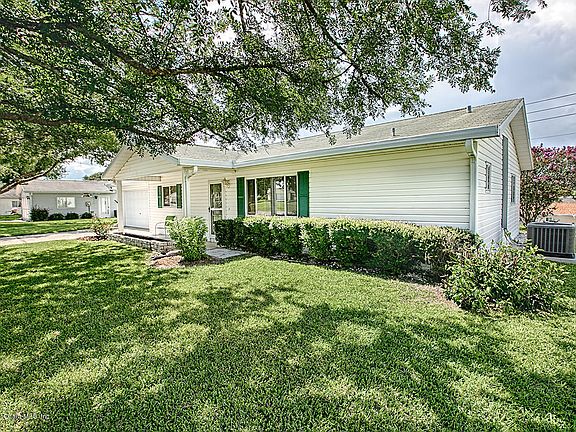 Great little package in Spruce Creek South with rocking chair front porch enjoying nice shade from 2 trees. 2 bedrooms, 2 bath with a 2-car garage sitting above rear neighbors on a spacious 1/4 acre lot. Split plan provides privacy for guests. Master offers walk-in closet and bath with ceramic tile shower stall. Second bedroom has convenient access to the guest bath. Kitchen has large closet pantry. Fully finished lanai with glass windows under heat and air with adjoining 20x11 covered patio to enjoy the large rear yard and direct access to a nature trail. Air Conditioner replaced in 2017; Roof replaced in 2005. Septic system for low water bills. Community offers clubhouse, swimming pool, tennis & pickleball courts, dog park, walking trails, softball field, numerous activities.