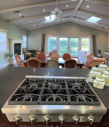 3 bedroom, 2.5 bath home. Large open floor plan kitchen/Dining/Living room area. Hardwood and Tile flooring throughout. Central heating and Airconditioning. The kitchen includes all Thermador appliances: 2 ovens + warmer, 6 burners Stove Top, Refrigerator + Freezer, Microwave, and Dishwasher. An abundant amount of cabinetry for kitchen and dining storage as well as a walk-in pantry. The Kitchen Storage also features sliding pull-out drawers in the lower cabinets, a rolling pull-out spice rack, and a built-in drawer that holds two 20 gallon trash bins. The kitchen faces the living area and French doors to the backyard. There are two spaces for barstool seats at the kitchen island, and plenty of space for a 10+ person dining table. The Living area has room to relax in front of the gas fireplace and/or TV. Ample shelves and cabinetry in the Living room as well for books, art or additional storage. The Kitchen/Dining/Living room has Vaulted ceilings, skylights, and lots of windows keeping it bright during the day. And recessed lighting throughout allowing for it to be well-lit at night. Master Bedroom also has French doors to the Backyard. Large Walk-in Closet. The bathroom includes a freestanding bathtub, a large shower, and two sink vanity. The other two bedrooms share a jack and Jill bathroom with a large shower and two sink vanity. Both bedrooms have walk-in closets. The laundry room includes space for a full-size washer and dryer, a sink, a built-in retractable ironing board, room for bulk storage, and access to the side of the house. 1 Guest bathroom. The backyard has a grass area, patio space, and small garden space. The front yard also has a grass area and an Olive Tree. There is a 2-car garage with room for storage. And 2 car driveway. There is also street parking available. Street cleaning Tuesdays and Wednesdays 10:00 am-12:00 pm. Available March 15 UNFURNISHED. Scheduling appointments to view this home for candidates that have submitted an application. Applicant is required to view the home before being offered a lease agreement. Viewing will begin the first week of March. Please do not disturb tenants. Thank you. Owner pays for Gardener. Renter is responsible for water, gas and electricity. No smoking.