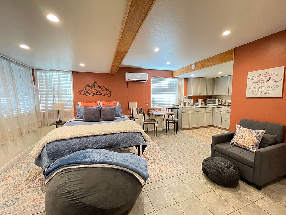 Studio apartment fully furnished, and utilities included. This unit comes with a carport which is great for snow season, a split AC/heat system, kitchen with fridge (NO OVEN/STOVE) along with large private bathroom. Great ground level apartment, off lower Lone Pine Canyon so easy access in the snow, outside sitting areas to enjoy and a easy walk to town. Included: UIA Internet Trash Electric Gas Water Furniture and supplies PLEASE FILL OUT THE APPLICATION, WE DO NOT OFFER VIEWINGS WITHOUT A COMPLETED APPLICATION - Thank you :) This apartment used to be a Airbnb so it is fully setup, just bring your clothes. No pets please. Month to month