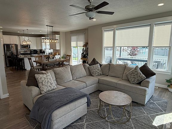 Gorgeous home in the heart of Spanish Fork! This modern 4-bed, 2.5-bath residence is minutes from shopping, dining, schools, and I-15. Enjoy a spacious open kitchen and family room designed for gatherings. The primary suite features a generous walk-in closet and private bath. Relax or entertain on the expansive deck, perfect for barbecues and outdoor furniture, overlooking a fully fenced yard with auto sprinklers. Includes a roomy 2-car garage. Move-in ready! Buyer to verify listing information and square footage.