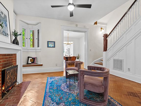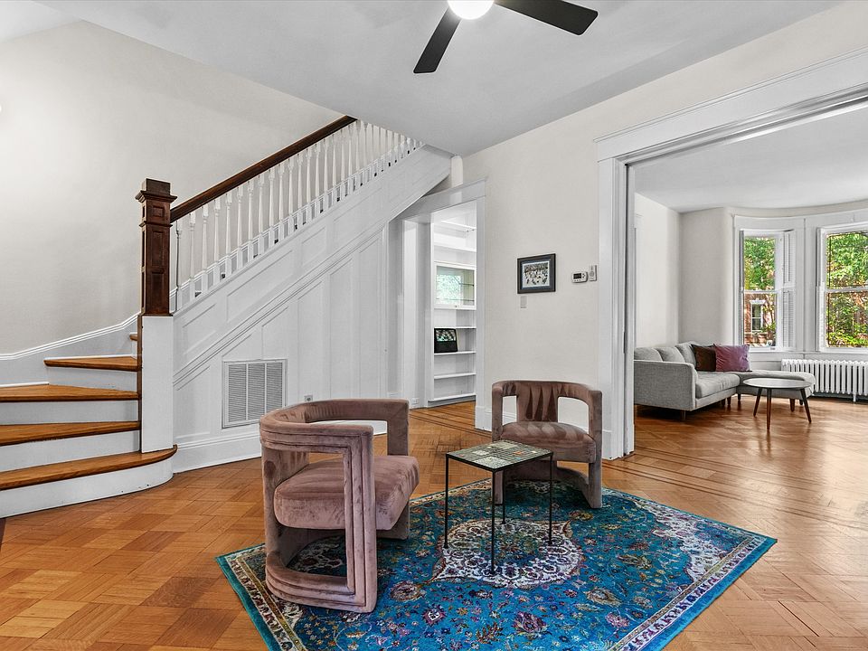 Fully furnished 4-bedroom, 3.5-bathroom contemporary home in the vibrant Mount Pleasant neighborhood, blending minimalist design with bold, colorful accents and expressive artwork throughout.