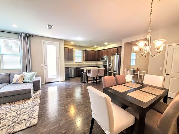 This gorgeous two story 3 bedroom 2.5 bathroom with two car garage home has many upgrades. Enter into the formal living room with large windows and high Ceilings and recessed lights. Gourmet kitchen has stainless steal appliance, dark wood cabinets, granite counter tops. Open concept floor plan to your family and dinning room. Enjoy the fire place in the winter nights. Nice wood flooring, built in desk office area Half bath downstairs. Two car garage with storage racks. Private backyard/patio. Smart thermostat, centrally heated and air conditioned. All bedrooms upstairs along with laundry room. Master suite has walk-in closet, dual sink, bathtub and shower. Ceiling fan in master bedroom and downstairs family room. Easy to maintain, close to all shopping, freeway, transportation.