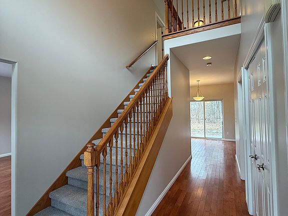 Updated 4 bedroom, 3 bath home on large, wooded cul-de-sac lot. Beautiful two-story entryway, hardwood floors, fireplace and spacious great room on main level. All new paint and carpeting throughout home. Main floor bedroom/office connects to a 3/4 bath. Kitchen, with granite counters, stainless-steel appliances, pantry and breakfast area, overlooks wooded back yard and paver patio. Upper level has 3 generous sized bedrooms, loft, and large windows with abundant light. Primary en-suite has walk-in-closet, linen closet, double sinks with granite, separate water closet and combination tub/shower. Unfinished basement with newly painted walls, floors and ceiling is great for extra living space. Charming neighborhood with creek, ponds and a park. Convenient location less than an hour from Chicago. Located in the award-winning Duneland School district near expressways, South Shore train, and the Indiana Dunes National Park.