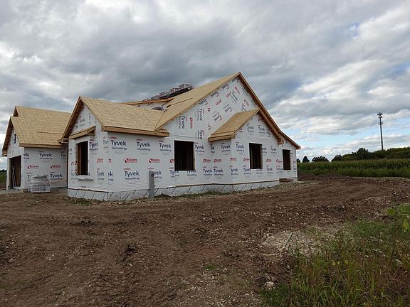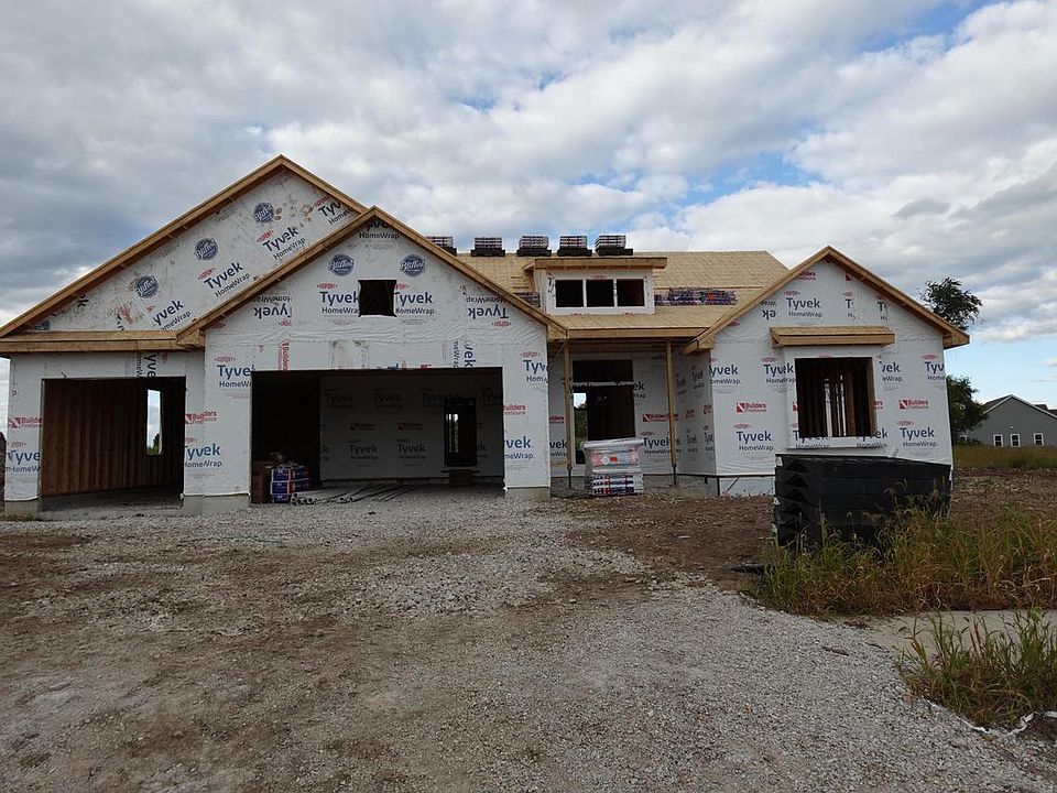 House in rough trades. Completion 2026.4 bedrooms/2.5 bath/elite series split ranch. Basement has 1 egress slider window & drain/vent rough-in for future full bath. Ceramic tiled walk-in shower w/2 shower heads/double sinks in master bath. Double sinks family bath. WIC's all bedrooms. 9' main floor ceilings/pitched ceiling in living room & foyer/tray ceiling master bedroom. Box-tray ceiling in kitchen & dinette. Kitchen cabinets are staggered w/cabinet crown moulding/cabinet hardware/granite or equivalent countertops/backsplash/island w/sink/spacious pantry closet. Laundry & mudroom w/drywall lockers, closet, cabinets & sink. Covered front porch w/prairie-style box posts. 6-panel entry door/transom window/keypad deadbolt. 3-car garage with large storage area (14'7'' x 16'9'').