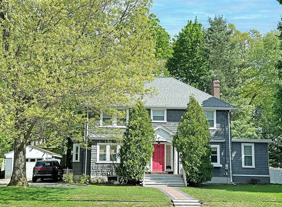 Enjoy the golden hour every day in this 3367sf Colonial with 14 windows facing the setting sun. Welcome your guests up the new stone walk and the elegant side-lit entry door into a gracious foyer w/ a large coat closet. Terrific entertaining kitchen with Bolivian granite, SS appliances & a long center island. The kitchen opens to a large DR on one side and features french doors to a rear deck on the other side. Front-to-back 26' LR features beamed ceilings, cozy window seat reading nook & FP. The 24' sunroom has french doors to fenced yard. Up the turned staircase to 3BRs, including a 26X14 main BR w/ FP & en suite bath. Lower level 24x19 teen/nanny suite includes full bath, bright rec room & home office. Rear sundeck for BBQ overlooks huge fenced rear yard. Electric door garage on the other side of the patio. Super convenient location close to Rts 95/128, Mass Pike, Woodland Station green line T, Brae Burn, Newton Well. Hosp, Charles River Kayak, bike trails, etc
