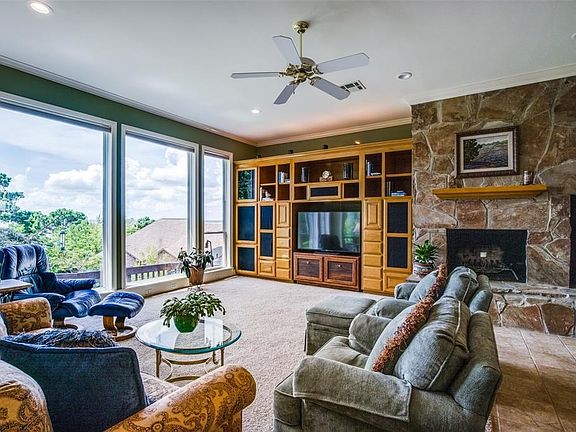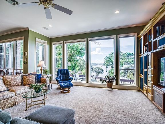 Nestling among tranquil mature woodlands, this charming custom 3-bed 3-bath home sits in an elevated position commanding spectacular southwest facing views across Lake Palestine. The primary suite is spacious with a large bathroom ensuite and walk-in closet. The home boasts multiple living areas, with a well equipped kitchen featuring beautiful solid maple cabinetry, breakfast bar and living area. Hardwood floors and 12-foot ceilings in the formal dining and living room create an environment for every mood. The covered porch and terraced deck overlook gorgeous landscaped grounds extending to well over half an acre. Garaging is available for 3 cars, with the smaller garage currently purposed as a workshop. 2022-01-26