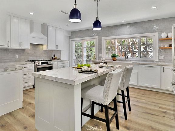 NEW PRICE!!!Beautifully re-imagined 4 bedroom, 3 bath with almost 2,100 sqft located in one of Granada Hills' best locations!!! This stunning one story home has it all, radiating natural light, an open layout and chefs kitchen where style, form and function converge. As you enter, the long foyer leads you to a magnificent living room that's has a ton of windows, high ceilings, an open concept kitchen with center island which connects to the dining room. The kitchen features custom cabinetry, high-end stainless steel Bosch appliances, farm sink, porcelain countertops, entertaining island with bar seating. Remodeled baths feature the latest trends in lighting & fixtures. The sun filled primary retreat with en suite enjoys a spa-like bathroom with frameless shower, soaking tub, double vanity, walk-in closet, vaulted ceilings and recessed lighting. Additionally, 3 secondary bedrooms are all great sized with the front bedroom that can be used formally or substituted as playroom/office/flex space.