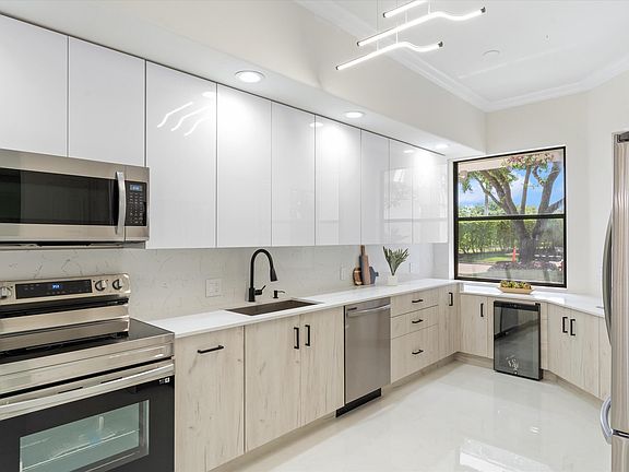 Impeccably redone light and bright first floor condo offering 3 bedrooms and 2.5 bathrooms with a gorgeous golf course view. This home offers an exceptional living experience. Beautiful new kitchen boasts quartz countertops with waterfall edge, breakfast bar, and a wine cooler. All new lighting and fixtures throughout. The spacious primary bathroom is complete with a walk-in closet featuring built-in storage. Situated within walking distance of the main clubhouse and just steps from the neighborhood pool, this unit offers convenience and luxury. Schedule a showing today!