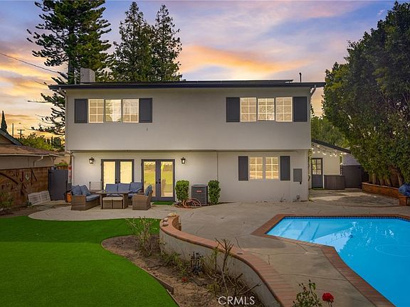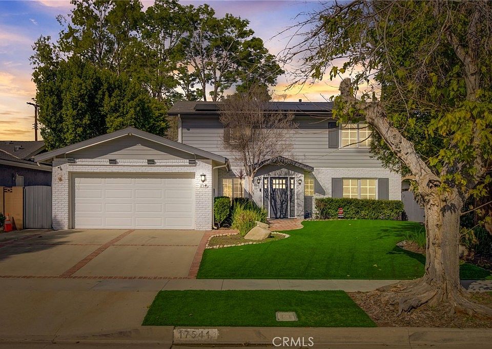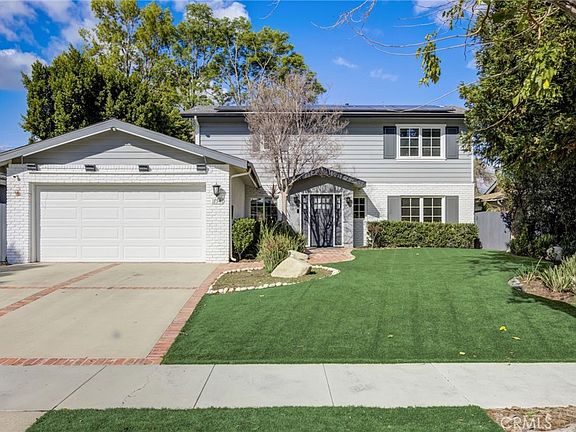 Completely remodeled rare beauty is situated on a desirable street in Granada Hills located in the coveted Granada Hills Charter School District & has all the bells & whistles! Attractive curb appeal offers handsome paint scheme w/ brick accents, large concrete driveway, artificial lawn, & mature privacy trees. Step inside to a large formal entry w/ wainscot paneling, expansive open floor plan w/ 4 spacious bedrooms & 3 upgraded bathrooms offering approximately 2,070 sq. ft. of exquisite living space. The remodeled customized chef's kitchen features custom cabinetry & soft close drawers, Caesarstone Quartz counters, Viking Refrigerator, Viking Double Oven Gas Range w/overhead pot filler faucet, stainless hood & dishwasher, subway tiled backsplash, farmhouse sink, pantry, French oak engineered hardwood floors, fully functional center island w/ electricity & prep sink, & an adjacent generous dining area. The spacious living room is perfect for entertaining your family & friends & offers a built-in surround sound system, floor to ceiling brick fireplace, & two sets of French doors w/custom roman shades leading to the entertainer’s rear yard. Downstairs one-bedroom suite w/ upgraded bath perfect for family or guests. Upstairs remodeled grand suite w/recessed lights, expansive walk-in closet with built-ins, & remodeled bathroom w/ marble shower & bench, marble floors, dual vanity w/marble counters, & separate soaking tub. Two additional sizeable bedrooms upstairs offer custom paint, ceiling fans, crown moldings, & spacious closets w/one customized walk-in. Newly remodeled upstairs bathroom features oversized marble & glass shower w/ bench. Additional amenities include newer roof & gutters, tankless water heater, mud/laundry room w/custom cabinets, sink & Quartz counters, French oak engineered hardwood floors on first floor, walk-in linen closet w/ built-ins, hallway skylight, newer double pane windows w/ custom window treatments, new doors, newer interior and exterior paint, central A/C & heat, newer copper mainline, alarm system w/ cameras, & attached two-car garage. Entertainer's backyard provides privacy & tranquility w/attractive stamped concrete patio, raised brick planter beds w/ drip irrigation system, large synthetic grassy lawn, & lush mature landscaping. Enjoy countless hours in your newly plastered sparkling pool or dine alfresco under the stars! Your private oasis alleviates the need to travel, just settle in & enjoy your magical retreat!