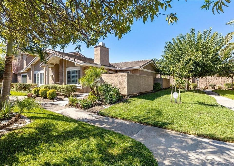 Welcome to this charming 2 bed 2 bath condo that looks & feels like a detached home perfectly situated in the heart of Rancho Bernardo. This inviting property features an open concept layout that centers around a large living room with vaulted ceilings, a cozy fireplace, tile flooring throughout & lots of dual pane windows that create a bright, spacious, inviting feel. Nicely updated kitchen with plenty of counter space & storage looks out onto your private patio perfect for entertaining, evening bbq's, pet's or extra play space. Neutral paint colors, plantation shutters, recessed lighting, updated bathrooms & a huge laundry room with extra space for even more storage. Primary bedroom with generous ensuite complete with dual sink vanity & gorgeous easy entry shower. Nearby detached 1 car garage along with an assigned parking space. Full service HOA provides cable/TV, water sewer, termite, exterior & roof maintenance. Enjoy the two community pools, spas & tennis courts. This well kept community is conveniently close to shopping, dining, top rated Poway Unified schools & easy freeway access for low-maintenance living in one of Rancho Bernardo's most desirable areas!