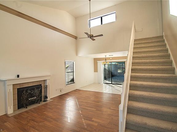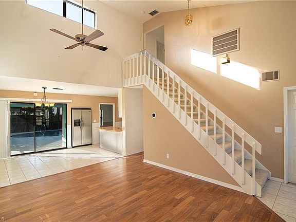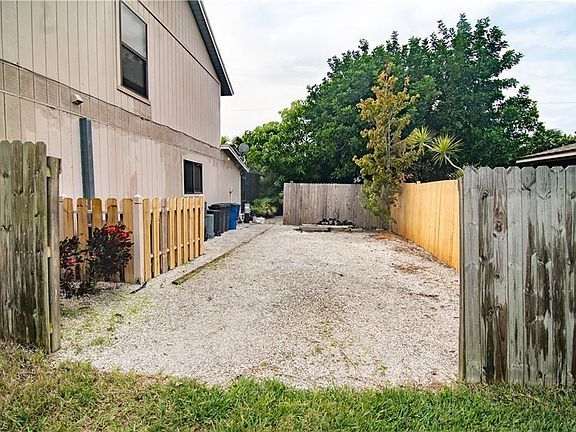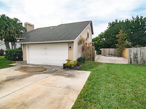 A must see property! This two story home has 3 bedrooms, a huge den and 2 baths with a working fireplace. Large extended driveway 2 car garage. This home features a tropical paradise feel with 2 mature mango trees and tropical landscape with gorgeous outdoor lighting in the backyard. The landscaped is all rock and surrounds the lanai with a storage shed tucked away in the corner. They also on the side yard have a shell gravel driveway which will fit a medium sized boat on the side of the house. Stove, Washer, Dryer, and Dishwasher are less than year old. New AC Unit. NO HOA Fees!