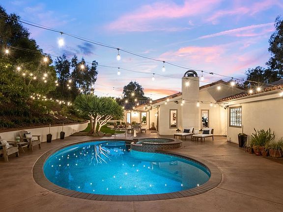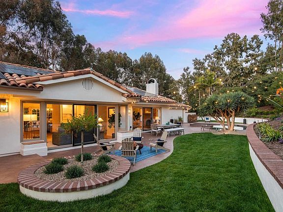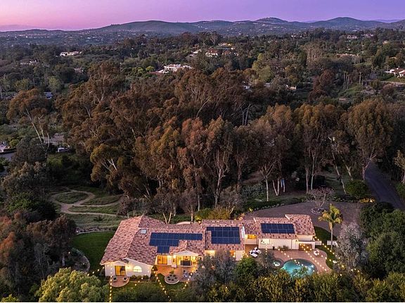 Escape to your exquisitely renovated single-level estate located in the highly sought after west side Covenant of Rancho Santa Fe. Meticulously maintained and fully renovated both inside and out. This custom 5 bedroom, 3 1/2 bath home is situated on an expansive 3.48 acres with views of the surrounding hills as well as the century-old grove of eucalyptus trees that sits on the property. With a long private drive leading you away from the road, you'll feel a sense of immediate relaxation when you arrive. The large back patio offers a great space for entertaining, covered in a canopy of party lights that set a wonderful evening ambiance. A spa-like heated pool and hot tub will ensure you are truly embracing the southern California lifestyle on your private estate. With acres to explore, you'll enjoy beautiful sunset skies from a wide option of outdoor sitting areas as you watch hot air balloons pass gently over the property. The interior of the home features new white oak flooring, a fully renovated kitchen with high end appliances and stunning white quartz countertops. The open layout of the home offers plenty of light and space for everyone in the family to spread out. Relax in the luxuriously remodeled primary bath or enjoy one of several private sitting areas offering views of nature and coastal breezes. This home's transitional design and styling exudes vibes of warm and casual elegance blending traditional and modern finishes throughout. From gorgeous new light fixtures to the highest quality door hardware and cabinet pulls, every last detail in this stunning renovation was thoughtfully accounted for. Enjoy seamless living as the home is operated by a variety of smart home systems which provide access and customization at your fingertips.The home also features a newer two-piece clay tile roof with a 40 panel solar system. The oversized 3-car finished garage has been outfitted with custom-built cedar garage doors as well as an epoxy floor. The driveway offers plenty of additional parking and a lower lot area provides additional space for any other toys you may have. There may even be room for an ADU or other accessory buildings on the lower lot. The property offers easy access into Encinitas and the surrounding beach communities and is close to the highly-rated Rancho Santa Fe schools as well as excellent shopping and restaurants. Are you ready to schedule a showing and make this well-appointed home your very own private retreat?