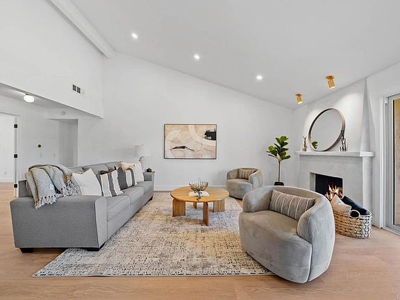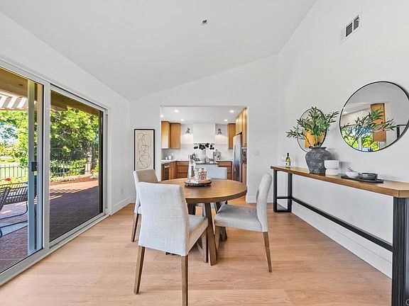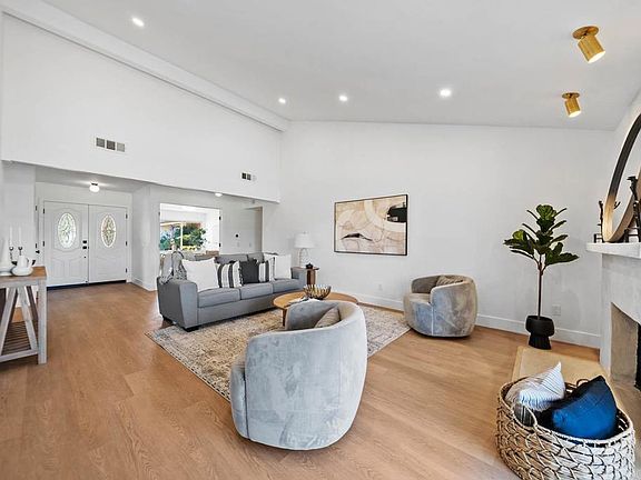 This tastefully updated move-in-ready single-story home with exceptional unobstructed golf course views is located on a quiet cul-de-sac in the 55+ community of Oaks North in Rancho Bernardo. Spanning 2,102 sq. ft., the property offers 3 bedrooms, a spacious bonus office/den with French doors - easily used as a 4th bedroom - and 2 full bathrooms. Meticulously remodeled and freshly painted inside, the home features an open-concept layout with vaulted ceilings in the living and dining rooms, luxury engineered wood flooring and a fireplace. Central AC and heating, along with dual-pane windows and sliding doors throughout, provide comfort year-round. The remodeled kitchen offers abundant new cabinetry, granite countertops and stainless steel appliances. Both the primary and guest bathrooms include walk-in showers. Additional highlights are an attached 2-car garage with washer and dryer hookups and a newer water heater. The private low-maintenance backyard is complete with a covered patio and is perfect for entertaining, relaxing and enjoying the cooling breezes, panoramic golf course views and beautiful sunsets. The low annual HOA fee provides access to community amenities including a heated swimming pool, clubhouse, pickleball courts, lawn bowling, paved walking paths and social activities such as happy hours, yoga, bridge and movie nights. Conveniently located near multiple golf courses, the I-15 freeway, banks, restaurants and shopping centers, this home combines comfortable living with an active community lifestyle.